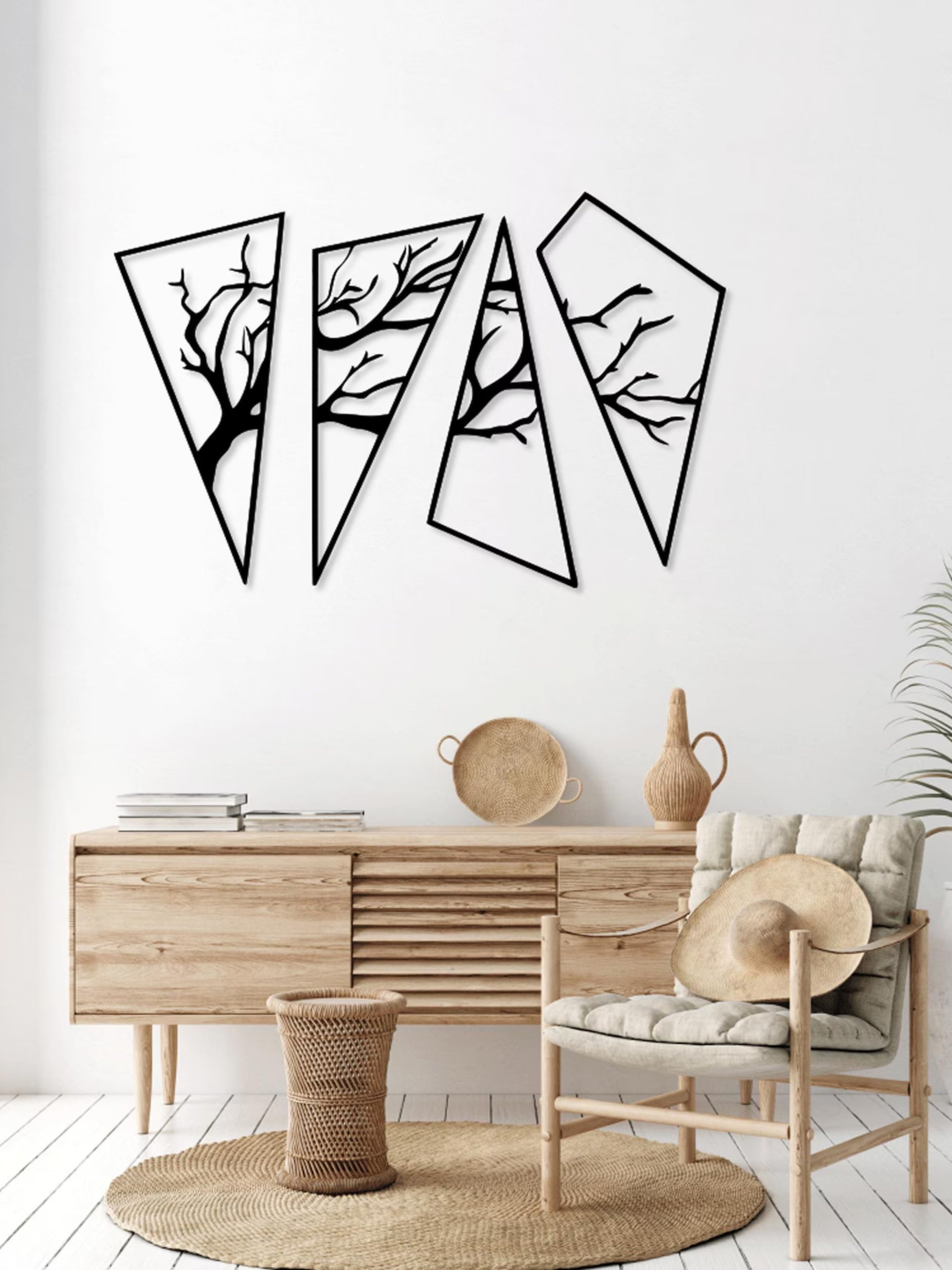 Modern ve Bohem Uyum: Minimalist yaprak silüetleri, hem modern dekorasyonlarla hem de daha bohem ve rustik tarzlarla mükemmel bir uyum sağlar.