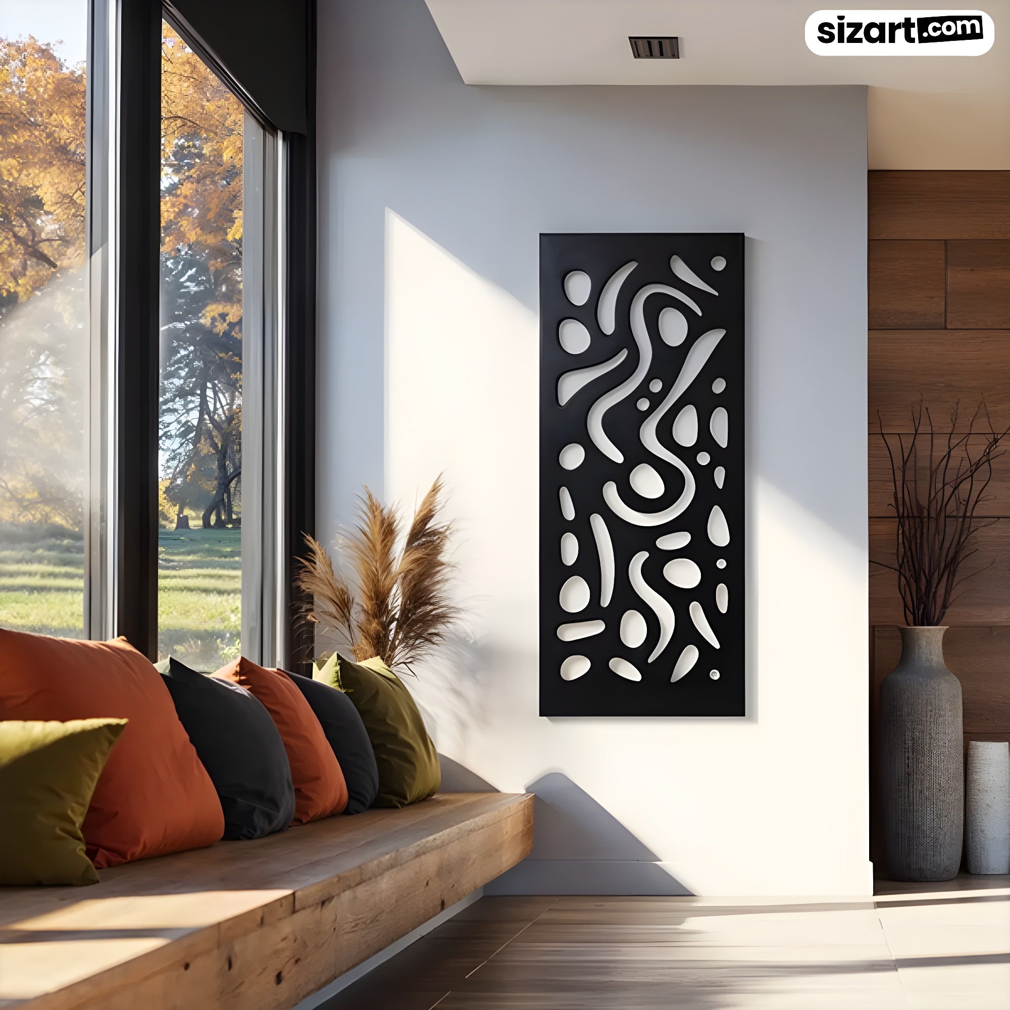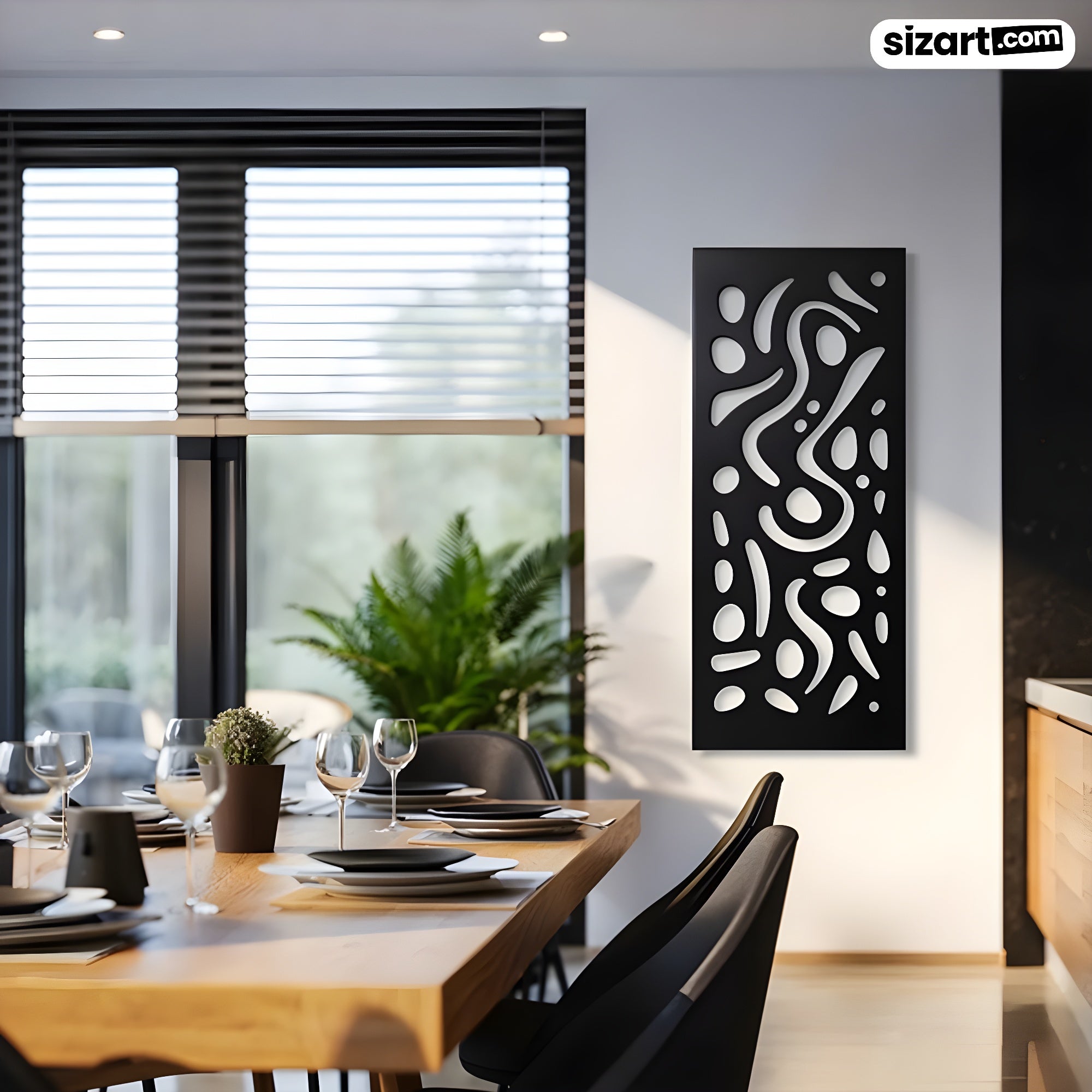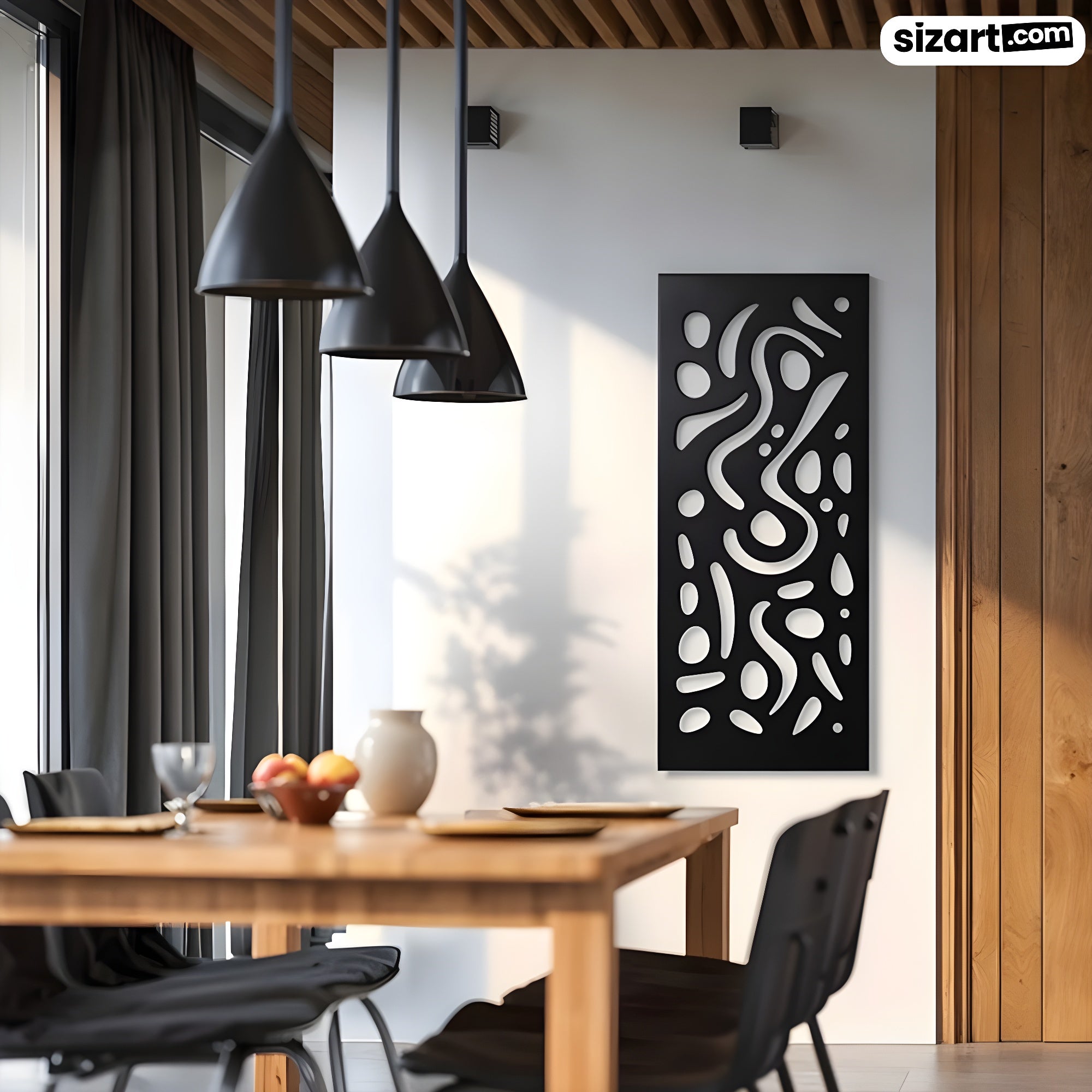 Mat siyah metalin güçlü etkisiyle şekillenen bu tasarım, organik formların rastlantısal bütünlüğünü gözler önüne seriyor. Zarif kesimleriyle mekâna derinlik katarken, soyut bir sanat eseri havası yaratır. İster yemek odasında, ister oturma odasında, ister dış mekânda sergilensin; Soyut İzler, bulunduğu her alana modern bir galeri atmosferi katar.