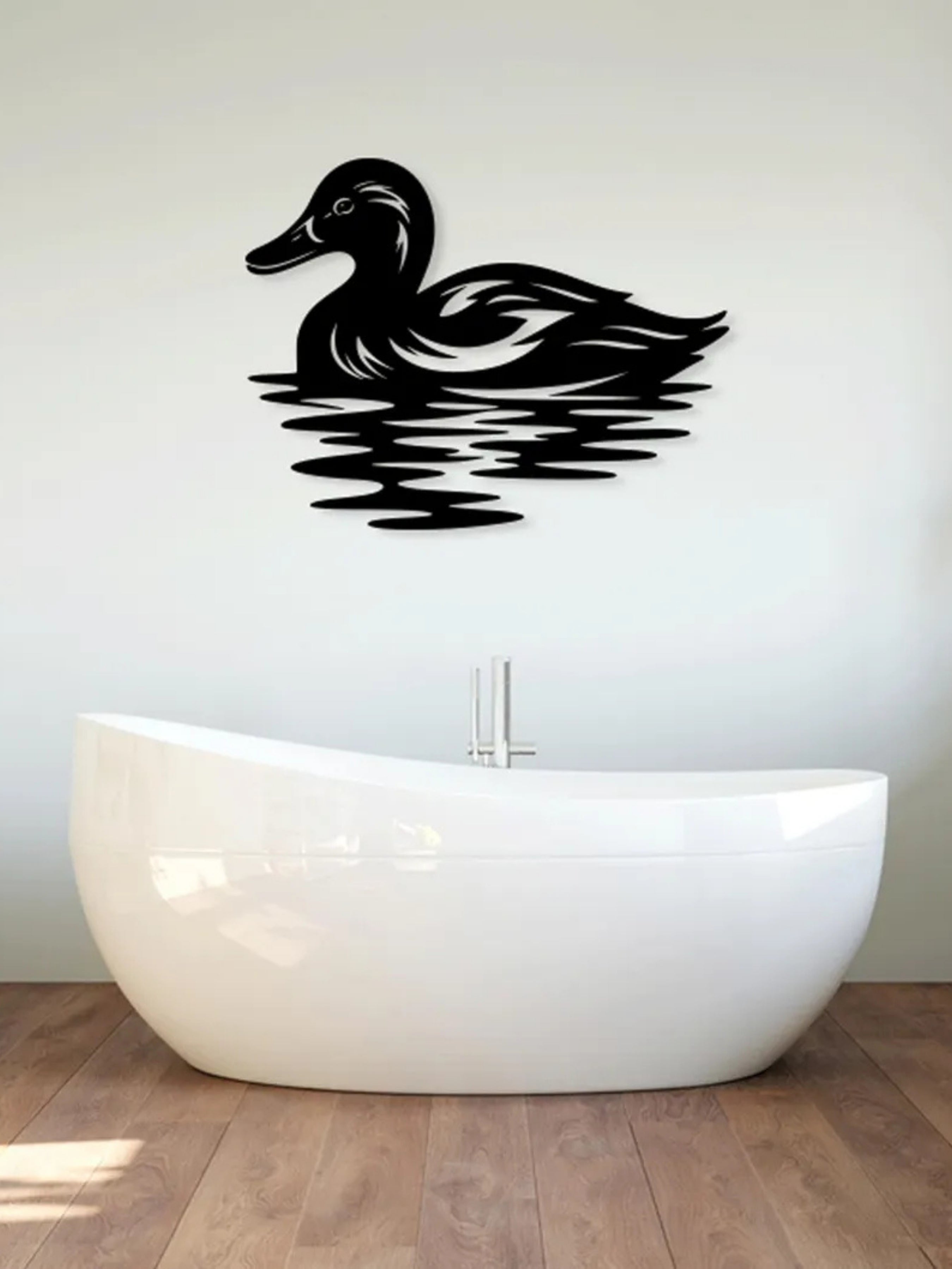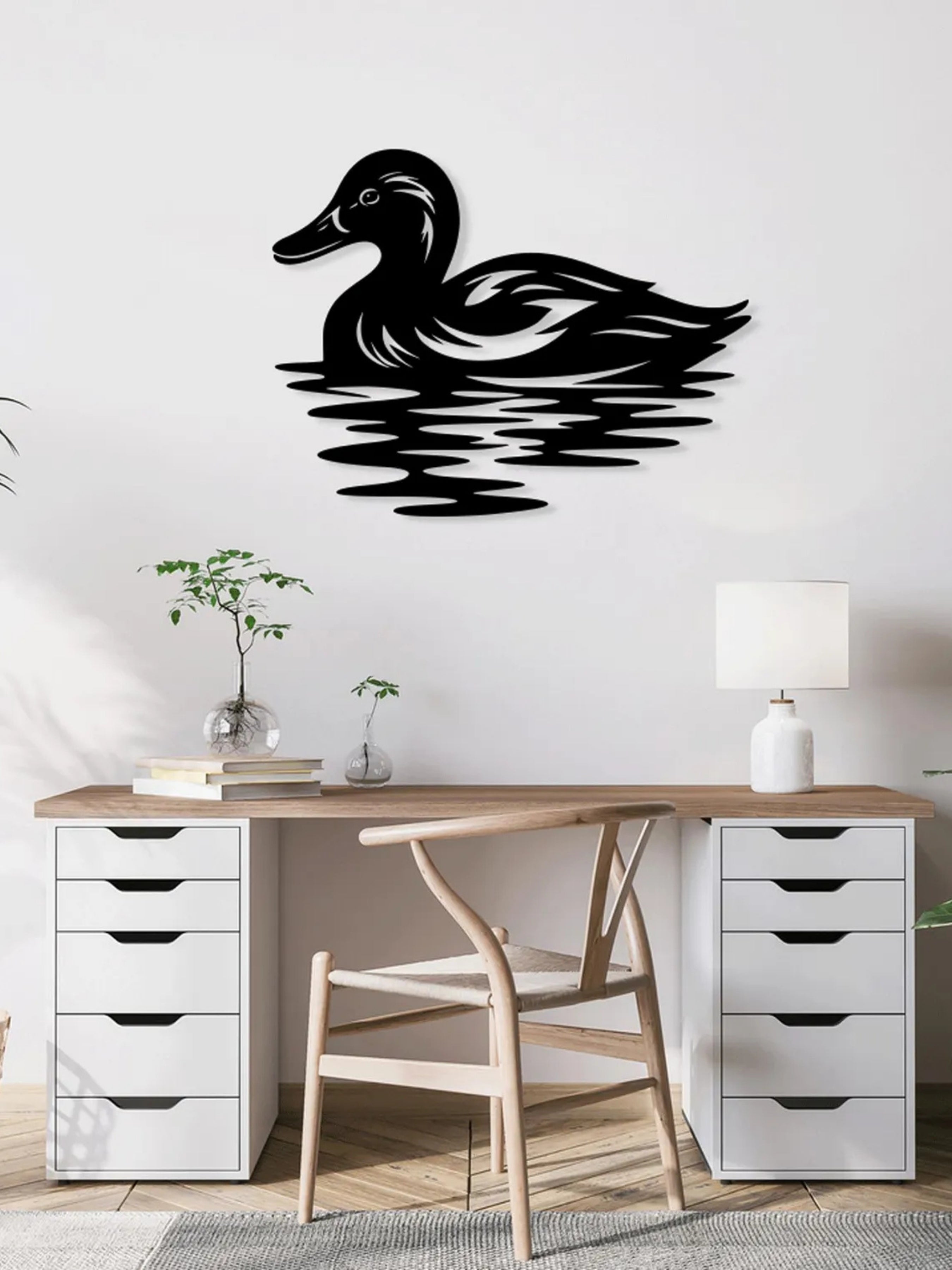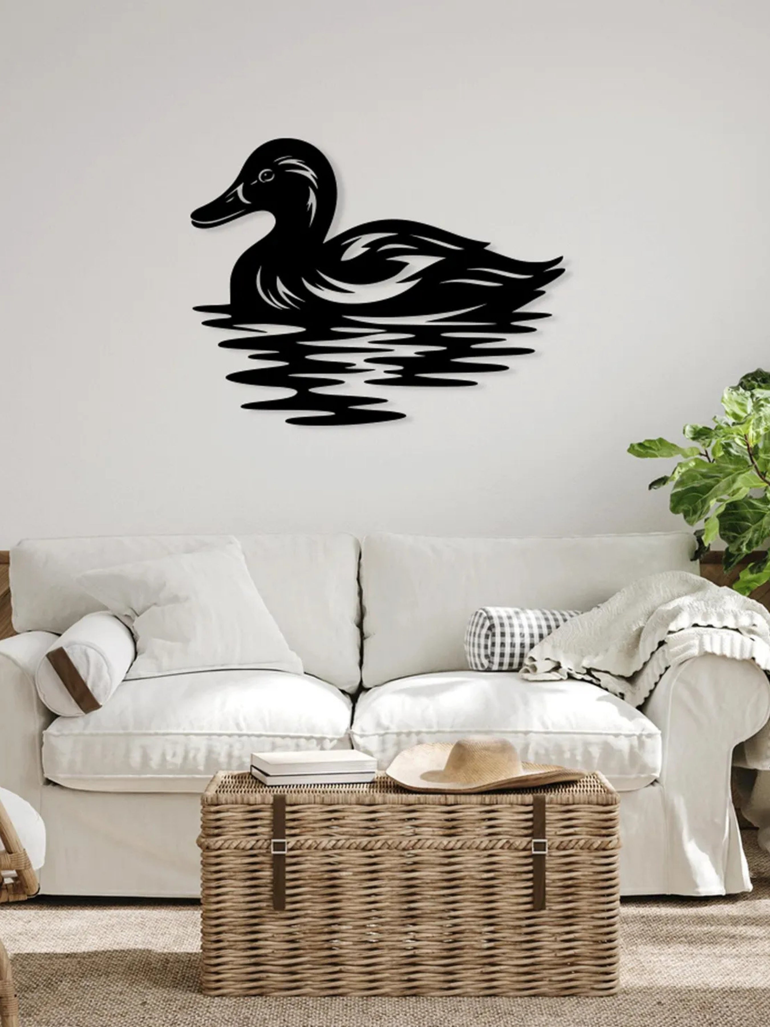 Sakin bir gölün yüzeyindeki o dingin anı, suda süzülen bir ördeğin zarif silüetiyle evinize davet edin. "Suda Yüzen Ördek" metal duvar tablosu, doğanın bu huzur dolu sahnesini minimalist ve modern bir dille yorumlayarak yaşam alanlarınıza sakinlik, ferahlık ve natürel bir şıklık katıyor.